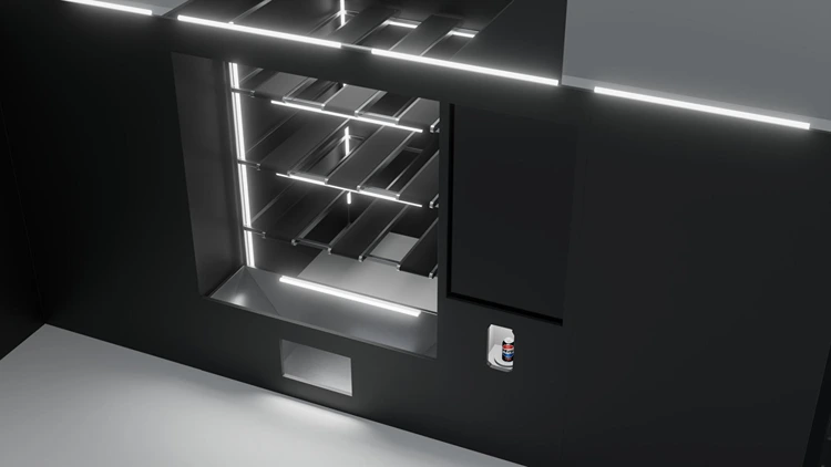 At the core was a modular conveyor structure with nine transport belts moving gifts through the machine before delivering them into the pickup box. A hands-free barcode scanner triggered the system instantly, ensuring a seamless interaction.